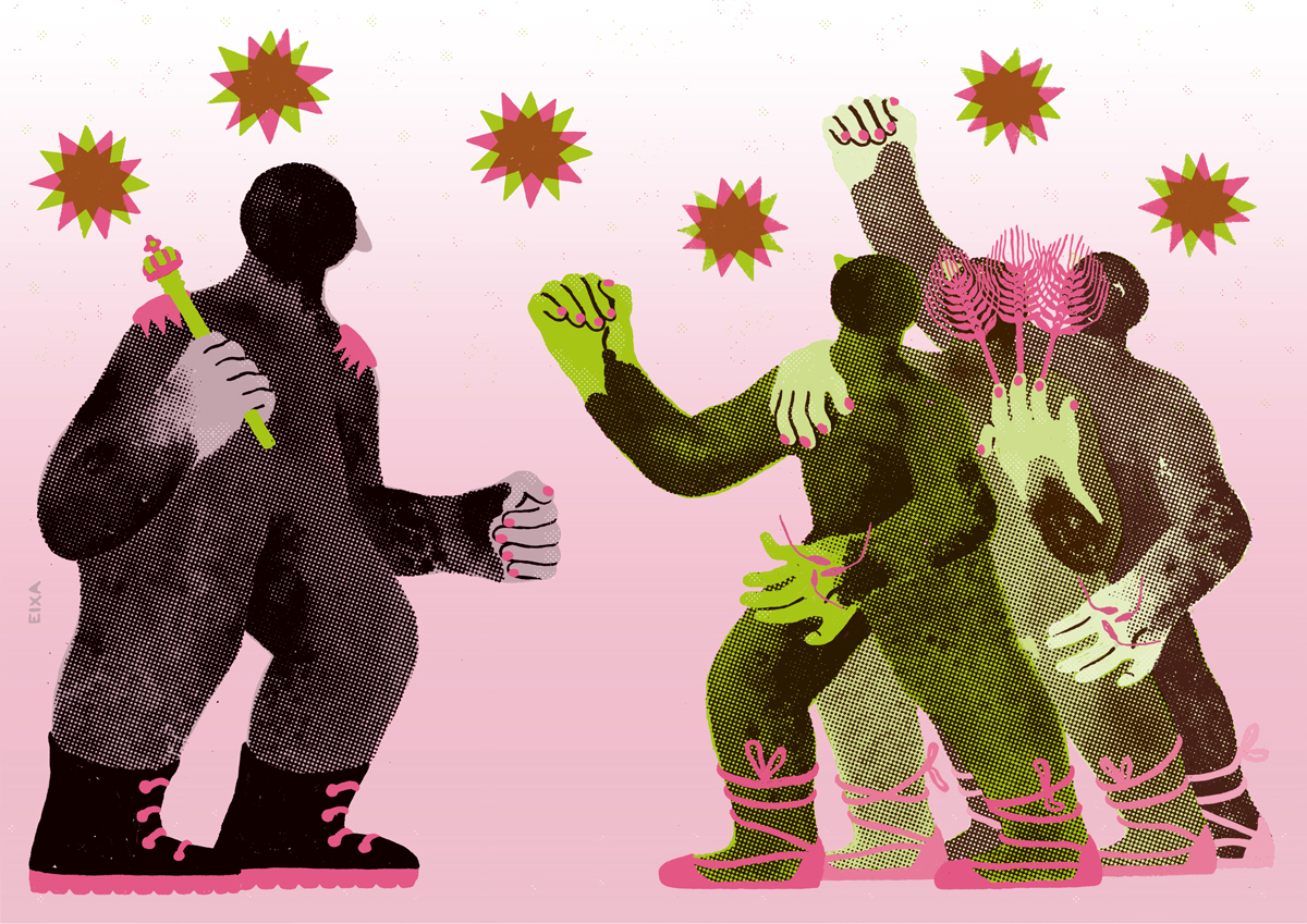 Eixa es el pseudónimo que utilizo como dibujante, pero toda la gente que me conoce me dice Isa o Isabel para dirigirse a mí. Soy una enamorada de las técnicas de estampación y una alucinada de los fanzines. Formo parte del colectivo de artistas gráficos, ilustradores y autores de cómic Vendo Oro, que organiza el festival de autoedición gráfica y sonora Tenderete en València. También tengo dos proyectos radiofónicos autogestionados: G.R.A.P.A. y B-analizar fanzines junto con Alejandro Álvarez. Me encanta hacer talleres y he trabajado en el campo gráfico para colectivos como A Tiro Hecho, Pensaré, La Repartidora, The October Press, Benimaclet Entra, etc.